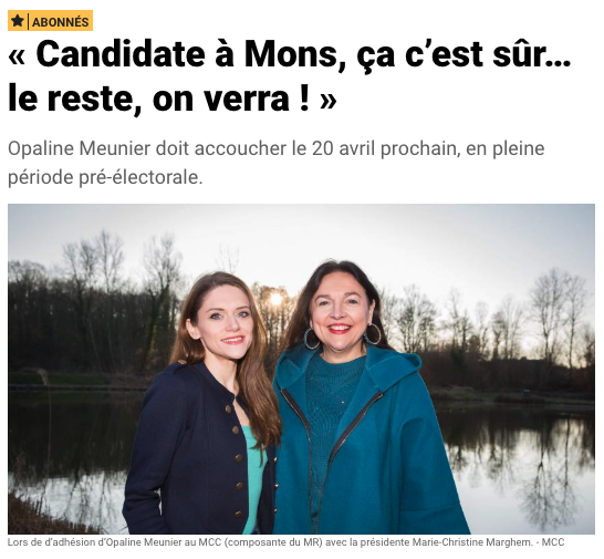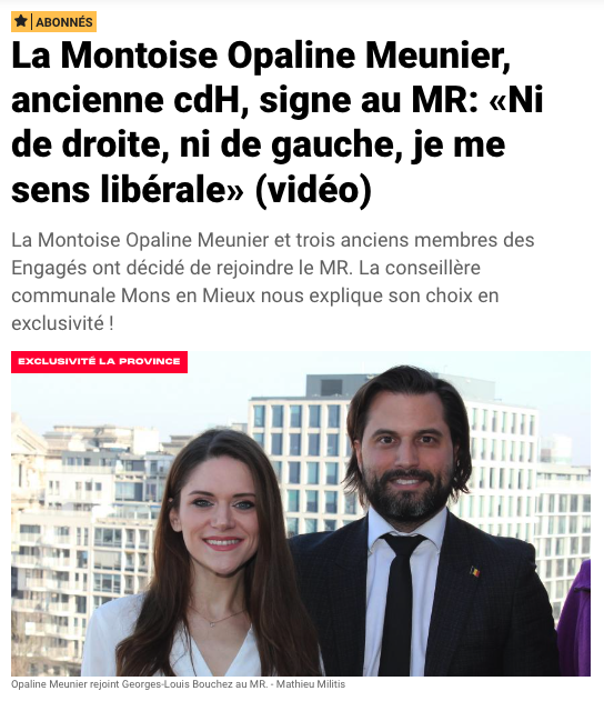Toutefois, pour rejoindre le MR, Opaline Meunier passe par la case MCC (Mouvement des citoyens pour le changement), créé voici 25 ans par Gérard Deprez, ancien président du PSC devenu cdH. Aujourd’hui, le MCC est présidé par la députée fédérale Marie-Christine Marghem.