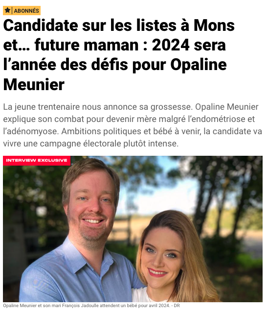 Candidate sur les listes à Mons et ... futures maman : 2024 sera l'année des défis pour Opaline Meunier