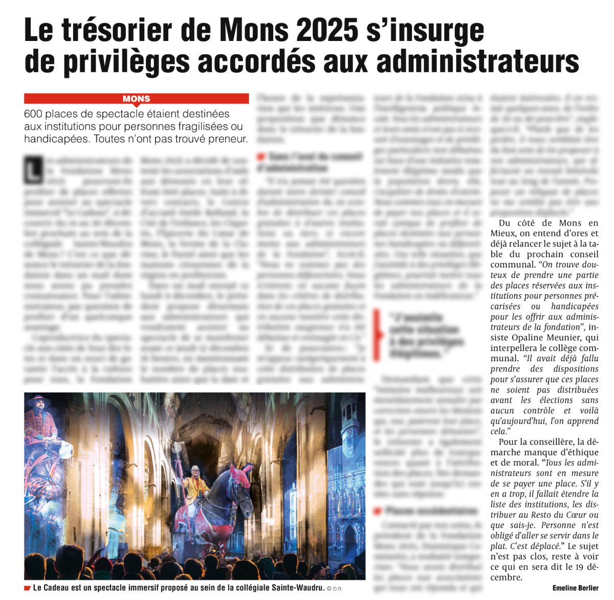Le trésorier de Mons 2025 s'insurge de privilèges accordés aux administrateurs