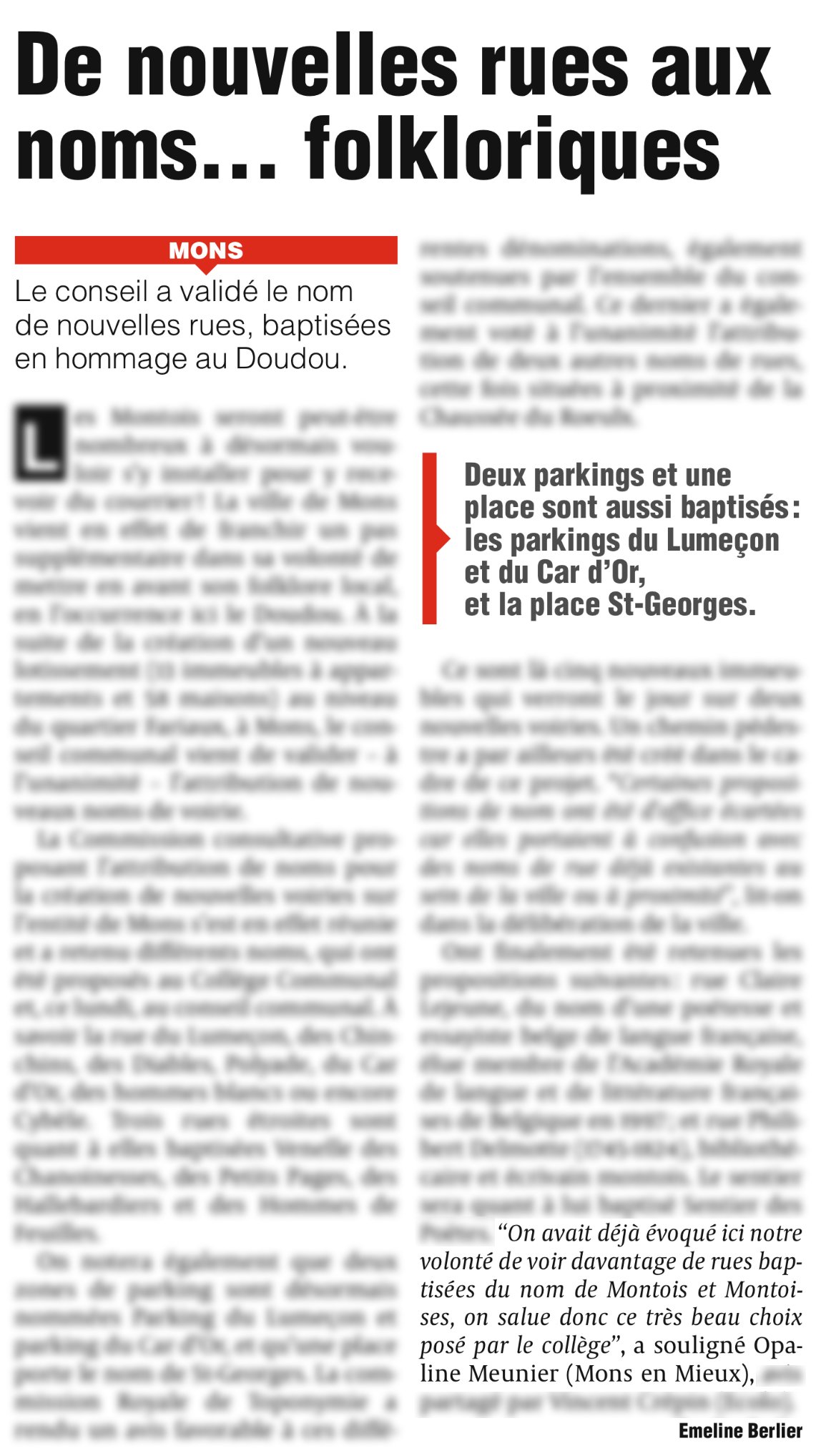 « On avait déjà évoqué ici notre volonté de voir davantage de rues baptisées du nom de Montois et Montoises, on salue donc ce très beau choix posé par le collège» a souligné Opaline Meunier (Mons en Mieux)