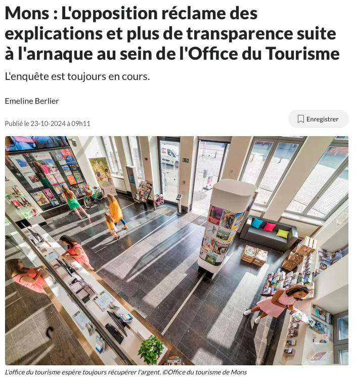Mons : L'opposition réclame des explications et plus de transparence suite à l'arnaque au sein de l'Office du Tourisme